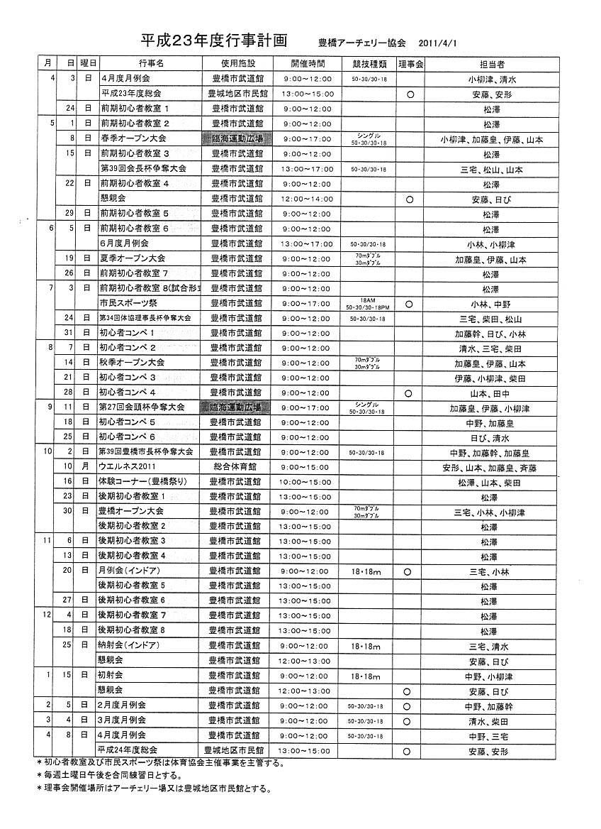 | 2005年度行事計画 | 県アーチェリー大会日程 | 記録室 |