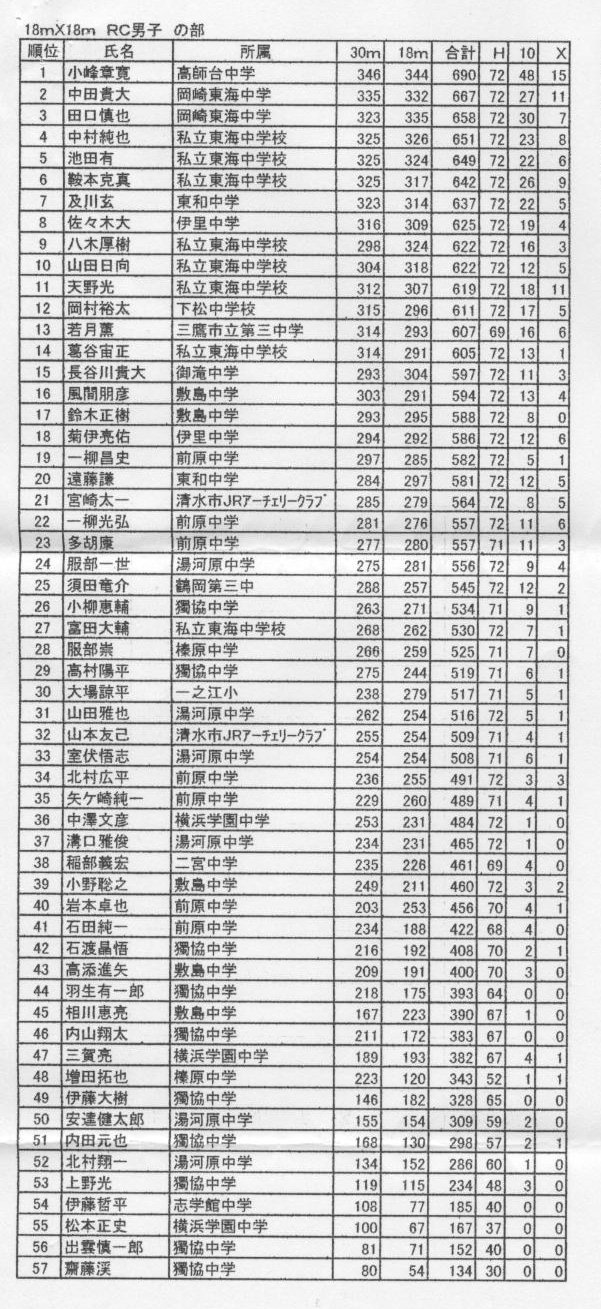 小峰君は18m(36射)+18m(36射)計72射720点満点