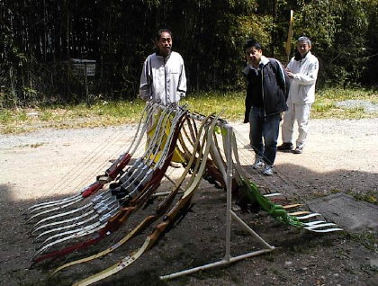 1年間のスポーツ教室を終えた弓具たちを整備・修復し、